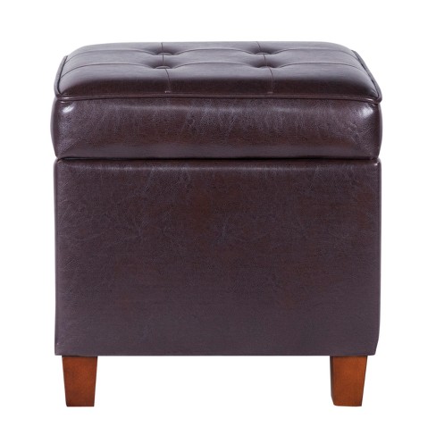 Square Tufted Faux Leather Storage Ottoman Brown Homepop